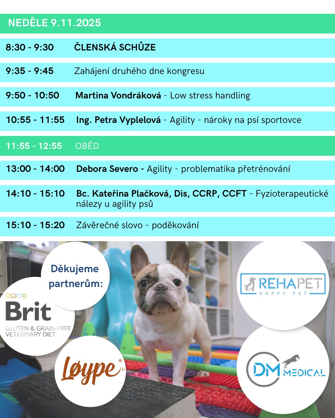 Ing. Petra Vyplelová, Ph.D, je mezinárodní rozhodčí agility, která účastníkům kongresu přiblíží tento sport a otevře prostor pro diskuzi o fyzioterapeutických nálezech.